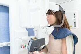 3次元的に頭蓋骨の解剖学的形態を詳細に把握することで、インプラントの手術をより安全に行うための診断ツールです。現在、インプラント治療ではCT撮影は必須とされています。
